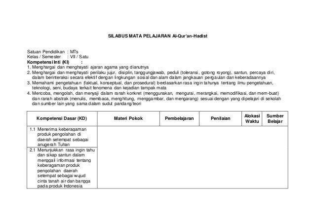 Untuk mata pelajaran al qur'an hadits ini ada beberapa modifikasi. Silabus tik kelas vii semester 1. Smp negeri 1 pontianakkelas : Menerapkan hukum bacaan nun mati/ tanwin dan mim. Qur'an hadits standar kompetensi :